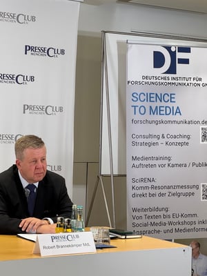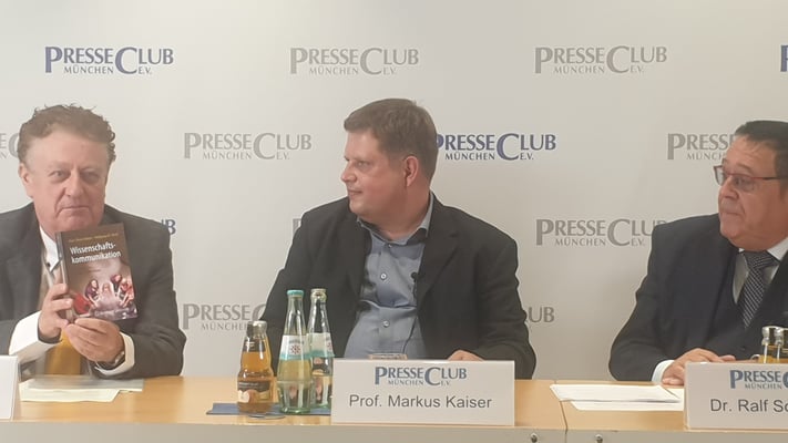 Wissenschaftsbarometer-Leiter Bastian Kremer und Geschäftsführer Gunther Schnatmann vom Deutschen Institut für Forschungskommunikation (DIF) im Presseclub München. Wer nicht dabei sein